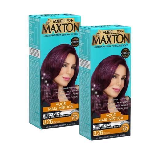 Kit contém: Tintura creme 50g. Loção reveladora Maxton 30 volumes 50ml. Par de luvas. Guia explicativo expresso no interior da embalagem.