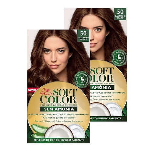 TINTURA SOFT COLOR SEM AMÔNIA CASTANHO CLARO Compatível com cabelos quimicamente tratados. Aloe Vera + Manteiga de Karitê e Óleo de Coco 100% Naturais. 90% menos quebra do cabelo. Dura até 28 lavagens. Ótima cobertura dos fios brancos. Coloração Soft Color que cuida do seu cabelo deixando reflexos de cor e cores visivelmente saudáveis, fórmula suave livre de amônia e enriquecida com ingredientes puros e naturais. Seu ritual de coloração rápido e luxuoso, com delicada fragrância floral em apenas 20 minutos. Cabelo incrivelmente macio e cheio de brilho. Ean: 7891182016858 Ean: 7891182016858