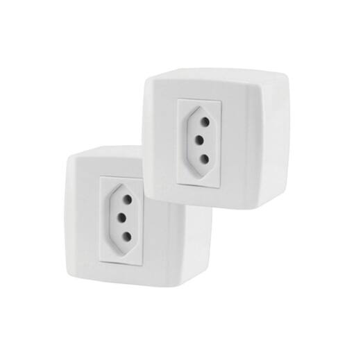 Informações técnicas: Cor: branco Acabamento: brilhante Composição: plástico isolante com contatos em metal Dimensões: - largura: 7cm - altura: 7cm - profundidade: 4,5cm Corrente: 20 amperes Tensão: 250v