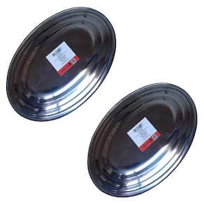 Kit 2 Travessa Bandeja Restaurante Oval Inox 30 cm para Porção Kit contendo 2 Bandejas Ovais em Inox medindo 30 x 21 x 2 cm
