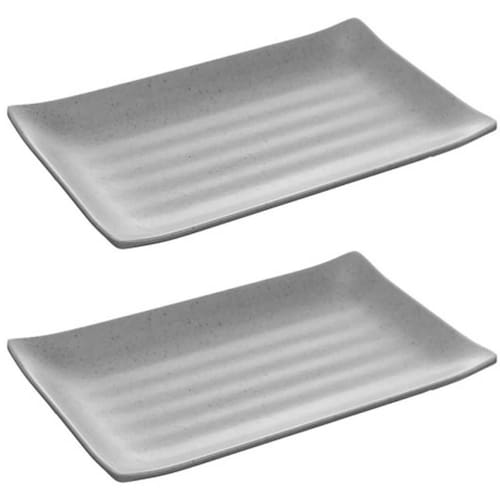 Kit 2 Travessas Melamina Prato Sushi Lyor Tóquio Granilite 17,5x11x2,5cm Retangular