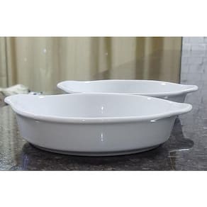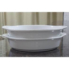 Kit 2 Travessas Refratárias Redondas com alças - Porcelana branca - (AxL) 4CM x 17,5CM (2)