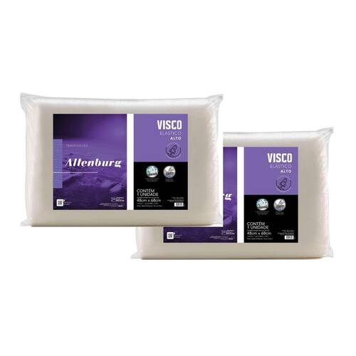 Kit 2 Travesseiros Visco Elástico Alto Altenburg Travesseiro Visco Elástico Alto Altenburg O travesseiro Visco preenche a distância entre o ombro e o pescoço e é ideal para quem dorme de lado. Possui recheio de viscoelástico, com baixa resiliência. - Antipressão: molda-se aos contornos da cabeça, exercendo menor pressão e auxiliando circulação sanguínea. - Termorregulador: não aquece com o calor do corpo. - Antimicrobial: tratamento ultrafresh antiácaros, fungos e bactérias.