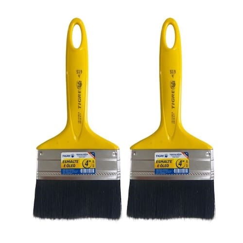 Kit 2 Trincha Pincel Para Pintura Tinta Esmalte Óleo 4'' Tigre A trincha, ideal para tintas esmalte e óleo, conta com cerdas macias e resistentes, que garante aplicação uniforme e acabamento perfeito. Cabo ergonômico proporciona conforto e precisão no uso. Perfeita para áreas grandes e detalhes, como: parede, teto, rodapé, canto e outras superfícies diversas, permitindo um trabalho rápido e de alta qualidade.