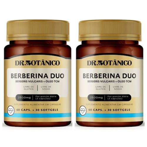 Kit 2 un - berberina duo 2500mg 90 capsulas dr. Botanico Kit 2 un - berberina duo 2500mg 90 capsulas - total 180 capsulas dr. Botânico - Cada pote rende 30 doses -