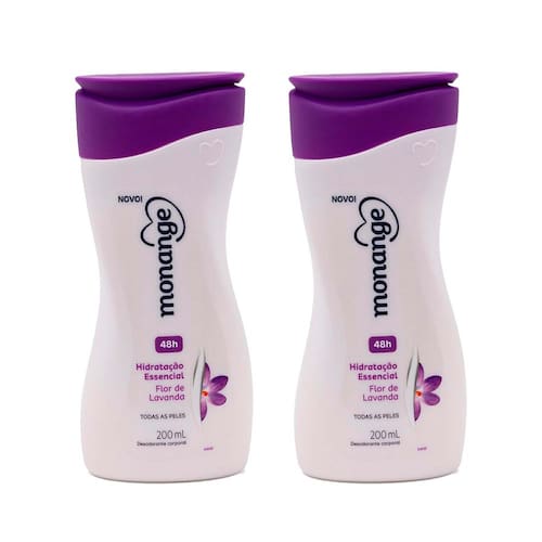 Kit 2 Und Creme Hidratante Monange Flor De Lavanda 200ml A Loção Hidratante Monange Flor De Lavanda é ideal para todos os tipos de pele, oferecendo hidratação profunda. Com rápida absorção, ele possui propriedades antioxidantes e proporciona uma sensação de relaxamento e conforto para sua pele.Sua fórmula com Flor De Lavanda, promove uma hidratação por até 24 horas e nutre até a segunda camada da pele. Além disso, é dermatologicamente testado.