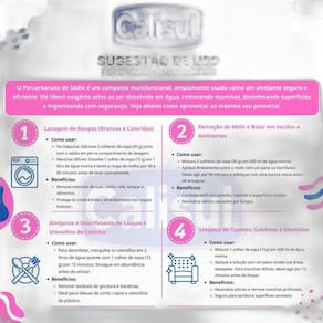 O Percarbonato de Sódio é um agente de limpeza ecológico, ideal para remover manchas difíceis de roupas brancas e coloridas, higienizar superfícies, desinfetar e clarear sem danificar os tecidos.