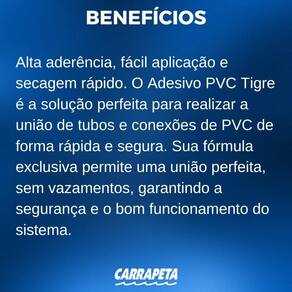 Especificações: marca: tigre peso: 850g aplicação: união de tubos e conexões de pvc