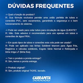Instruções de uso: 1º limpe bem as superfícies dos tubos e conexões que serão unidos. 2º aplique o adesivo em ambas as partes, garantindo uma cobertura uniforme. 3º encaixe as peças e pressione firmemente por alguns segundos. 4º deixe secar por pelo menos 24 horas antes de utilizar o sistema hidráulico. Marca: Não Informado Ean: 7895431604865