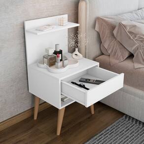 Estrutura: MDPAcabamento: Pintura U.V, alta resistência, que assegura durabilidade e beleza ao acabamentoGaveta: Sim, 01 gaveta com corrediças telescópicasNicho: Sim, 01 nichoPrateleira: Sim, 01 prateleiraPés: Sim, em PVC estilo retrô, mais segurança e durabilidadeDimensões do produto montado