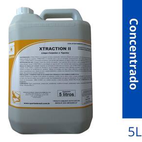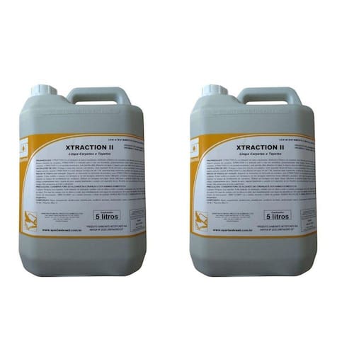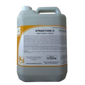 Kit 2 unidades de xtraction ii 5 litros spartan Xtraction ii é um limpador concentrado de baixa espumação, destinado a limpeza de carpetes com elevado grau de sujidade.Desenvolvido especialmente para limpeza pesada de carpetes, xtraction ii é indicado para o uso em extratoras, proporcionando uma rápida e eficiente remoção das sujidades mais aderidas nos carpetes. Kit com 2 unidades Xtraction ii é um produto econômico, pois permite altas diluições em água, é seguro para ser utilizado em qualquer tipo de extratoras com água fria ou água quente.Embalagem 5 litros Instruções de uso: - proteger a base dos móveis com plástico. - usar o aspirador de pó em toda a área acarpetada. - fazer um pré-tratamento nas áreas que contenham sujeira pesada, usando o xtraction ii a uma diluição em água 1:30 -método de limpeza por extração: seguindo as instruções do fabricante da extratora, usar xtraction ii a uma diluição máxima de até 1:60, de acordo com o grau da sujidade. -evitar molhar o carpete em demasia e, se em lavagens anteriores foram utilizados produtos com grau de espuma elevado, utilizar o anti espumante da spartan no tanque de recolhimento da extratora. Efetuar um enxágue com água limpa, utilizando a própria extratora. -deixar o carpete secar. Evitar andar antes que esteja completamente seco. -depois de seco, aspirar totalmente o carpete com aspirador de pó. Indicação de uso: carpetes e tapetes, sofás dos seguintes tecidos linho, chenille, sued, algodão. O xtraction ii é ideal para uso em extratoras como lava, ep 150, a 135, a262 ipc soteco, carpet cleaner e home cleaner da wap, se 4001 da karcher e etc. registro do ministério da saúde: produto saneante notificado na anvisa n 25351.008704/2003-22