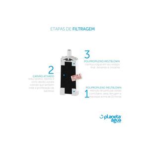Kit 2 Unidades Refil Filtro Torneira Universal Planeta Água Rosca Curta Lorenzetti, Aqua Bella, Vitalle, Forusi, Kit 2 Unidades Refil Filtro Planeta Água Torneira Universal Rosca Curta Lorenzetti Compatível para Aqua Bella, Vitalle, Forusi, Viqua, Sap Com o Refil Filtro Torneira Universal Rosca Curta Lorenzetti você tem água mais saudável, maior economia e ainda ajuda o meio ambiente. O Refil Lorenzetti possui 3 etapas de filtragem, retém partículas sólidas e impurezas vindas do cano, o carvão ativo reduz sabores e odores indesejáveis, reduz o cloro e inibe a proliferação de bactérias e por fim, o poliproleno meltblown clarifica a água em seu estágio final, deixando-a cristalina. Sua instalação é super fácil, possui vida útil de 1500 litros e com apenas 1 Refil você economiza 75 galões de 20 litros de água mineral, o equivalente a 3000 garrafas pet de 500ml. Atenção Esse produto é compatível com os modelos Aqua Bella, Vitalle, Forusi, Viqua, Sap, Ellen, Leão, Imperatriz, Delta, Hydra, entre outros. Vantagens e Benefícios - Elimina sabores desagradáveis - Elimina odores - Reduz o cloro - Mais saúde - Mais economia Características Técnicas - Cor: Branca - Vida Útil: 1500 litros - Vazão: 20 litros/hora - Retenção de Partículas: Classe D 15 a 30 micra - Dimensões da Embalagem: 150x55x55 mm - Dimensões do Produto: 122x50x50 mm - Peso Líquido: 0,084 kg - Peso Bruto: 0,100 kg - Temperatura de Operação: 1 a 40 C - Pressão de Operação: 29 a 392 kPa 3 a 40 mca Kit 2 Unidades Refil Filtro Planeta Água Torneira Universal Rosca Curta Lorenzetti Compatível para Aqua Bella, Vitalle, Forusi, Viqua, Sap Com o Refil Filtro Torneira Universal Rosca Curta Lorenzetti você tem água mais saudável, maior economia e ainda ajuda o meio ambiente. O Refil Lorenzetti possui 3 etapas de filtragem, retém partículas sólidas e impurezas vindas do cano, o carvão ativo reduz sabores e odores indesejáveis, reduz o cloro e inibe a proliferação de bactérias e por fim, o poliproleno meltblown clarifica a água em seu estágio final, deixando-a cristalina. Sua instalação é super fácil, possui vida útil de 1500 litros e com apenas 1 Refil você economiza 75 galões de 20 litros de água mineral, o equivalente a 3000 garrafas pet de 500ml. Atenção Esse produto é compatível com os modelos Aqua Bella, Vitalle, Forusi, Viqua, Sap, Ellen, Leão, Imperatriz, Delta, Hydra, entre outros. Vantagens e Benefícios - Elimina sabores desagradáveis - Elimina odores - Reduz o cloro - Mais saúde - Mais economia Características Técnicas - Cor: Branca - Vida Útil: 1500 litros - Vazão: 20 litros/hora - Retenção de Partículas: Classe D 15 a 30 micra - Dimensões da Embalagem: 150x55x55 mm - Dimensões do Produto: 122x50x50 mm - Peso Líquido: 0,084 kg - Peso Bruto: 0,100 kg - Temperatura de Operação: 1 a 40 C - Pressão de Operação: 29 a 392 kPa 3 a 40 mca