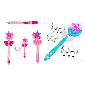 Kit 2 varinha mágica brinquedo azul rosa encantada luz som Produto em Kit 2 varinha mágica encantada da fada luz e som azul - diversão garantida para as crianças - medida aproximada: 33 cm de altura x 10 cm de largura - alimentação 2 pilhas aa não inclusas Marca: Não Informado