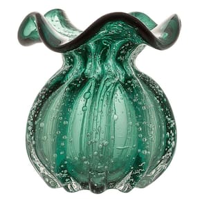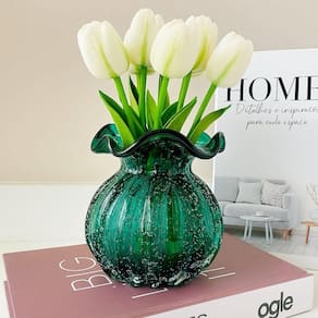 Vaso de Vidro Murano Flor Plantas Arranjos Verde Esmeralda Trouxinha 10x11cm Lemis