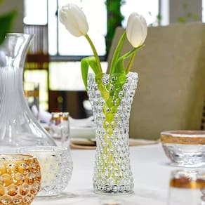 O Kit 2 Vasos Bubble de Vidro da Lyor é uma opção charmosa e elegante para quem busca adicionar um toque de sofisticação na decoração. Cada vaso possui 7 cm de diâmetro e 17 cm de altura, o que os torna ideais para flores e pequenas plantas. O design incolor e a forma arredondada fazem desses vasos uma peça versátil que combina com diferentes estilos de decoração, seja em ambientes minimalistas, modernos ou clássicos. Estes vasos são perfeitos para criar arranjos florais elegantes e podem servir como peça decorativa em diversos ambientes, como salas de estar, mesas de jantar ou escritórios.