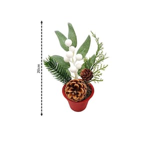 -02 unidades Vaso Decorado Galhos, Mini Pinheiro e Pinha Nevada, Berries 20cm