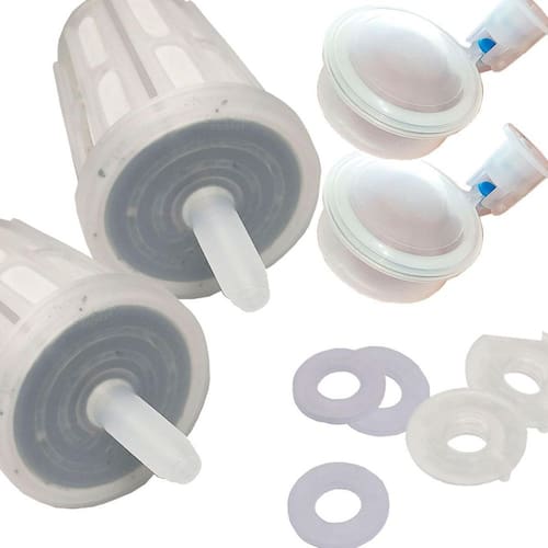 Kit 2 Vela Refil Filtro Talha de Barro Gravidade Carvão Ativado e Boia Dosadora KIT Vela Plástico Acquapure Carvão Ativado Para Filtro de Barro / Talha de Barro / Bebedouro de Gravidade - Com Boia Reguladora de Água. As velas são compatíveis com todos os filtros de barro por gravidade do mercado e, sem dúvida, não há meio mais seguro de oferecer água pura e garantir saúde e bem-estar.Vela Plástica de filtro com carvão ativado, inclui a porca e arruelas vedadoras. A Boia reguladora de água é eficaz e de ótima qualidade, duplicando a capacidade do seu filtro e evitando transbordamento. A micro porosidade do feltro retém partículas enquanto o carvão ativado deixa a sua água totalmente livre de cloro.Produto inovador devido a sua eficiência comprovada em laboratório na filtragem da água. RECOMENDAÇÕES: A Vazão de água deste produto é lenta nos primeiros dias e tende a aumentar quando o carvão ativado ficar totalmente umedecido. Substitua este elemento filtrante a cada 6 meses de uso. ---------------------------------------------------------------------------------------------------------------------------------------------------------- Marca do Refil: ACQUAMARModelo: 341 AcquapureEficiência da retenção de partículas: Classe IIIEficiência da redução de Cloro livre: Não Se AplicaEficiência Bacteriológica: Não se Aplica KIT Composto por: Filtro de Plástico Acquapure REF.341 2 UN + 2 UN Boia reguladora de água Produto de acordo com a norma ABNT NBT 16098:2012. Elemento filtrando destinado ao uso em água que atenda a portaria N 2.914 do Ministério da Saúde.