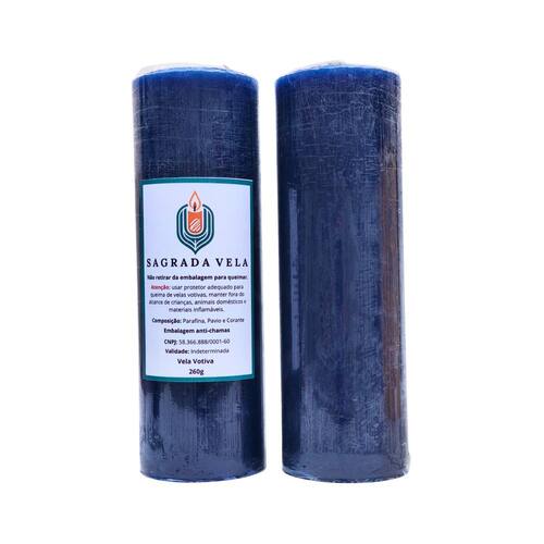 Vela Votiva de 7 Dias 100% Parafina - Fabricação Própria. Contém 2 unidades.Cor: Azul Marinho. Peso: 260 gramas. Altura: 15 cm. Diâmetro: 50 mm. Composição: Parafina, Corante e Pavio. Validade: Indeterminada. Marca: SAGRADA VELA. *Atenção: Plástico Anti-Chamas, NÃO retirar para acender. *Segurança: evite acidentes, utilize sempre um castiçal ou suporte próprio para velas. *Duração: 7 dias. As condições de queima podem alterar conforme o ambiente ou corrente de ar, portanto é indicado acender em local arejado e longe do alcance de crianças, animais domésticos e produtos inflamáveis. Como se trata de um produto artesanal, podem existir pequenas variações nas cores das velas. Embalamos cuidadosamente para o transporte. Marca: Não Informado