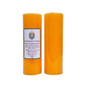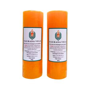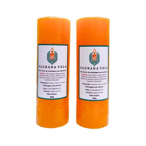 Vela Votiva de 7 Dias 100% Parafina - Fabricação Própria. Contém 2 unidades.Cor: Laranja. Peso: 260 gramas. Altura: 15 cm. Diâmetro: 50 mm. Composição: Parafina, Corante e Pavio. Validade: Indeterminada. Marca: SAGRADA VELA. *Atenção: Plástico Anti-Chamas, NÃO retirar para acender. *Segurança: evite acidentes, utilize sempre um castiçal ou suporte próprio para velas. *Duração: 7 dias. As condições de queima podem alterar conforme o ambiente ou corrente de ar, portanto é indicado acender em local arejado e longe do alcance de crianças, animais domésticos e produtos inflamáveis. Como se trata de um produto artesanal, podem existir pequenas variações nas cores das velas. Embalamos cuidadosamente para o transporte. Marca: Não Informado