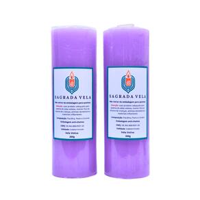 Vela Votiva de 7 Dias 100% Parafina - Fabricação Própria. Contém 2 unidades.Cor: Lilás. Peso: 260 gramas. Altura: 15 cm. Diâmetro: 50 mm. Composição: Parafina, Corante e Pavio. Validade: Indeterminada. Marca: SAGRADA VELA. *Atenção: Plástico Anti-Chamas, NÃO retirar para acender. *Segurança: evite acidentes, utilize sempre um castiçal ou suporte próprio para velas. *Duração: 7 dias. As condições de queima podem alterar conforme o ambiente ou corrente de ar, portanto é indicado acender em local arejado e longe do alcance de crianças, animais domésticos e produtos inflamáveis. Como se trata de um produto artesanal, podem existir pequenas variações nas cores das velas. Embalamos cuidadosamente para o transporte. Marca: Não Informado