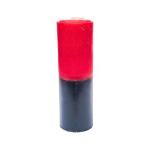 Contém 2 unidades. Cor: Vermelha e Preta. Peso: 260 gramas. Altura: 15 cm. Diâmetro: 50 mm. Composição: Parafina, Corante e Pavio. Validade: Indeterminada. Marca: SAGRADA VELA.