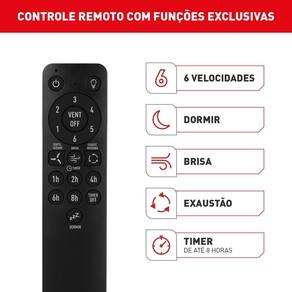 Conta com Controle Remoto*** com 6 velocidades + 4 funções: