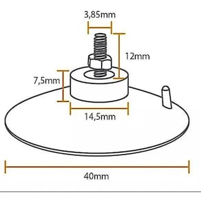 Comprimento total da ventosa (é a medida da ventosa instalada e não da ventosa solta) - 4 cm Largura da cabeça da Ventosa: - 1,4 cm Altura da cabeça da Ventosa - 0,7 cm Altura do parafuso da Ventosa - 1,2 cm Largura do parafuso da ventosa - 3,85 mm Medida do Selante em PVC - 2 cm de altura x 1,1 cm de largura (Após instalação da Ventosa, basta cobrir o parafuso com o selante em PVC para esconder o parafuso e porca, dando assim um acabamento perfeito no seu objeto). Marca: H Plásticos