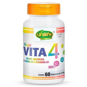 O que é o Magic VITA4 da Unilife É um suplemento multivitamínico composto por cálcio, magnésio, vitamina D e vitamina K2, juntos estes nutrientes formam um quarteto magico, todas essências para o bom funcionamento do corpo, e além de tudo são excelentes os benefícios extras que a boa quantidades dessas substâncias podem causar.