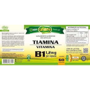Cada porção de 0,5 g 1 cápsula contém 100% da necessidade diária recomendada de Vitamina B1.