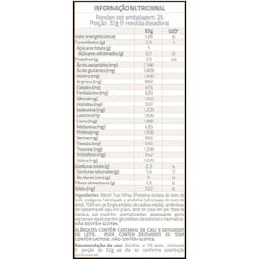 O True Whey Protein Hidrolisado e Isolado representa o estado da arte em suplementação proteica. Desenvolvido com matérias-primas nobres, processos tecnológicos de ponta e compromisso com a sustentabilidade, é ideal para quem busca um suplemento de altíssima qualidade, que alia performance esportiva, bem-estar, saúde e estética. Formulado exclusivamente com proteína do soro do leite whey hidrolisada e isolada, obtidas por processos que garantem a eliminação quase total de carboidratos, gorduras e lactose. Isso resulta em um produto de altíssimo valor biológico, com rápida digestão e aproveitamento eficiente. 23g de proteína por dose 32g 5,3g de BCAAs aminoácidos de cadeia ramificada 2,5g de Peptídeos Bioativos de Colágeno Verisol Um dos grandes diferenciais do True Whey: o colágeno Verisol é clinicamente comprovado na melhora da elasticidade e firmeza da pele, além de reduzir visivelmente linhas de expressão. Um ingrediente funcional que transforma o suplemento proteico em um aliado da estética e saúde dermatológica. TCM - Triglicerídeos de Cadeia Média: Fonte de energia de rápida absorção, ideal para quem busca mais vitalidade e foco. Os TCMs também contribuem para a e o controle do apetite, podendo ser úteis em estratégias de redução de medidas. Adoçado de forma natural e equilibrada, com Stévia, Taumatina e Maltitol, garantindo um sabor suave, sem o amargor típico de adoçantes artificiais e sem picos glicêmicos. Sugestão de Uso: Dilua 1 medida 32g em aproximadamente 150ml a 200ml de água, leite ou bebida vegetal de sua preferência. Misture com coqueteleira, mixer ou liquidificador. Ideal para consumir no: Pós-treino: para maximizar a recuperação. Café da manhã: para um aporte proteico e energético logo cedo. Entre as refeições: como um snack saudável e nutritivo.