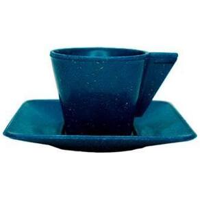 Kit 2 Xícara E Pires 50Ml Fibra Madeira Azul