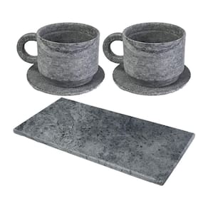 Kit 2 Xícaras de Chá com Pires Pedra Sabão Servir Decorar