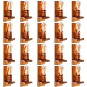 O Kit com 20 Arandelas Madeira Maciça - Modelo Barril é ideal para iluminar e decorar grandes ambientes com elegância e sofisticação. Seu design colonial rústico proporciona uma iluminação suave e encantadora para salas, corredores, varandas e espaços gourmet.