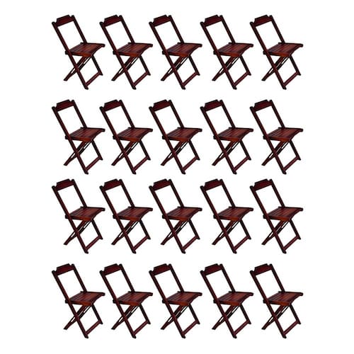 Kit 20 Cadeiras De Madeira Dobravel Imbuia é ideal para bares, restaurantes, estabelecimentos, áreas de lazer e tambem para sua casa. Feito em madeira maciça, tornando resistentes e duráveis. Seu design permite que seja encaixado em qualquer ambiente, trazendo um toque a mais para seu estabelecimento. Além de sua durabilidade, o que lhe trará conforto para servir seus clientes. Por ser dobrável torna-se mais fácil guardar, manusear e limpar o produto. Atenção: EVITE USAR PRODUTOS ABRASIVOS E QUíMICOS PARA LIMPEZA DO PRODUTO, aconselha-se o uso de pano umedecido para melhor conservação; mantenha o produto fora de chuva e sol constantes. CADEIRA Cor: Imbuia Modelo: Dobravel Dimensões: Altura 80 | Largura 45 | Profundidade 42