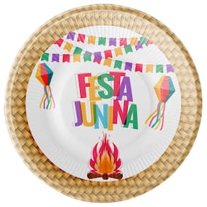 Kit 20 Convidados Pratos Copos Decoração Papel Festa Junina