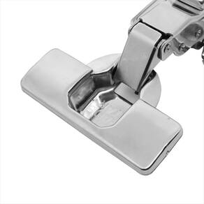 Dobradiça clip on com soft close em aço inox 201 Capa de braço, capa de caneco e parafusos inclusos Amortecedor para fechamento suave Abertura: 105 Diâmetro: 35mm Profundidade: 11,5mm Espessura compatível: 14mm a 23mm Embalagem: pares conjuntos Tipo: curva