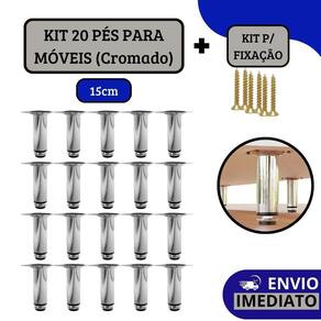 Kit 20 Pés Para Móveis Regulável Redondo Cromado 15cm