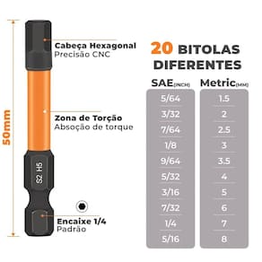Kit 20 pontas bits allen de impacto com zona de torção magnetizado hexagonal s2 profissional Kit bits de impacto profissional - potência, precisão e durabilidade em cada detalhe Você já quebrou um bit na hora h Chega de se frustrar com bits frágeis que espanam ou quebram no meio do serviço este kit de bits de impacto magnetizados foi projetado para e pesado, com zona de torção que absorve o impacto e evita que a peça quebre. Um investimento que dura 10x mais que kits convencionais. O que você recebe: - 10 bits hexagonais allen métricos: 1,5mm 2mm 2,5mm 3mm 3,5mm 4mm 5mm 6mm 7mm 8mm - 10 bits hexagonais allen sae-5/64 polegadas: 3/32 7/64 1/8 9/64 5/32 3/16 7/32 1/4 5/16 - comprimento: 50mm 2 polegadas - material: aço s2 tratado termicamente - magnetizados: fixação firme dos parafusos Por que esse kit é diferente - bits com zona de torção que absorve o impacto - não quebra fácil - magnetizados para não cair o parafuso no meio do uso - material s2 de alta resistência - alta precisão cnc para encaixe firme e perfeito - compatível com parafusadeiras e furadeiras de impacto Ideal para: - instalações elétricas - manutenção automotiva - marcenaria e móveis planejados - trabalhos industriais e domésticos - profissionais exigentes e hobbystas Pare de comprar kit novo a cada mês Esse é um daqueles investimentos inteligentes: você compra uma vez e esquece Mais torque, mais durabilidade e menos tempo perdido com bits fracos ou frouxos. 1. É compatível com todas as parafusadeiras e furadeiras Sim o encaixe é padrão 1/4, ideal para qualquer ferramenta com suporte hexagonal. 2. Os bits são realmente magnetizados Sim todos os bits têm ponta magnética para segurar parafusos com firmeza. 3. É resistente para uso em impacto Sim são bits desenvolvidos especificamente para impacto, com tratamento térmico e zona de torção. 4. Tem medidas em milímetros e polegadas Sim o kit vem com medidas duplas: 10 em milímetros 1,5 a 8mm e 10 em polegadas 5/64 a 5/16 . 5. Os bits têm mesmo mais durabilidade Sim por serem fabricados em aço s2 e com estrutura para impacto, duram até 10x mais que kits convencionais. Marca: Não Informado Ean: 7734625971669