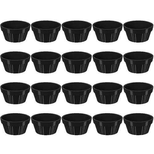 20 Ramekins Pretos 30ml Canelados Uno Coza para Temperos Shoyu Ramequim Oriental Restaurante