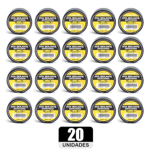 Kit com 20 unidades A fita isolante é um item essencial para qualquer kit de ferramentas, especialmente para quem trabalha com reparos elétricos. Com a largura de 19mm e comprimento de 5 metros, ela é perfeita para diversos tipos de aplicações. Feita de pvc, essa fita é altamente resistente e durável, oferecendo uma excelente aderência em superfícies lisas e irregulares. Ela também é capaz de suportar altas temperaturas, tornando-se ideal para proteção de fios e cabos elétricos. Além de ser utilizada em reparos elétricos, a fita isolante pode ser empregada em outras aplicações, como marcação de tubulações e identificação de cabos. Sua cor preta também a torna discreta e elegante.