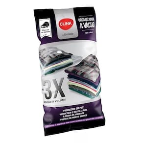 Sacos organizadores resistentes e duráveis, proporcionando a solução ideal para armazenar roupas, mantendo-as limpas, protegidas da umidade e do mofo. Acomodam grandes volumes de roupas, cobertores, travesseiros e outros itens que deseje guardar. Para remover o ar e comprimir os itens, pode-se utilizar uma bomba de sucção de ar ou um aspirador de pó. Assim, é possível ter mais espaço e organizar os pertences de maneira prática e eficiente.