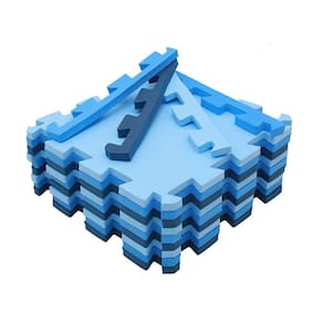 Itens inclusos: 20 placas de tatame EVA nas cores Azul Bebê, Azul Royal e Azul Marinho, Não Acompanham as Bordas