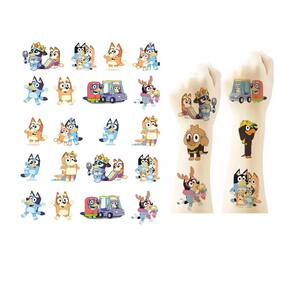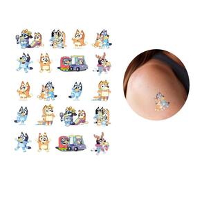 Kit 20 tatuagens temporárias folha A4 Bluey Para Festa 50mm ANIME a festa do seu pequeno com nosso Kit de Tatuagens Temporárias Bluey, que inclui 20 designs encantadores em uma folha A4 Cada tatuagem de 50 mm traz os adoráveis personagens da série, prontos para alegrar a festas e fazer a diversão das crianças ainda mais especial.