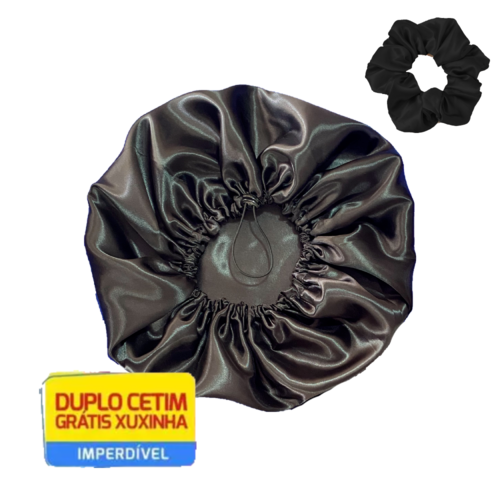 * Uso recomendado: Durante a noite * Tipo de cabelo recomendado: Todos * Modelo: Ajustável * Camadas: Dupla face (2 cores) * Itens Inclusos: 20 Toucas de cetim Ajustável dupla face e 20 Xuxinhas