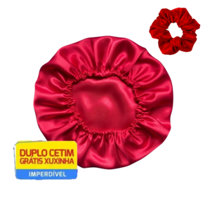 Kit 20 Toucas de Cetim Antifrizz Dupla Face Alto Brilho Ajustável + Xuxinha - Cor: Vermelho