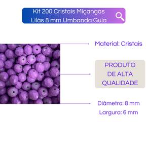 O Kit de 200 Miçangas Lilás de Cristais da Bialluz, é ideal para criar guias de umbanda e candomblé que emanam paixão e energia,cada uma com 8 milímetros de beleza única.Essas miçangas de alta qualidade são a escolha perfeita para elevar suas práticas espirituais.