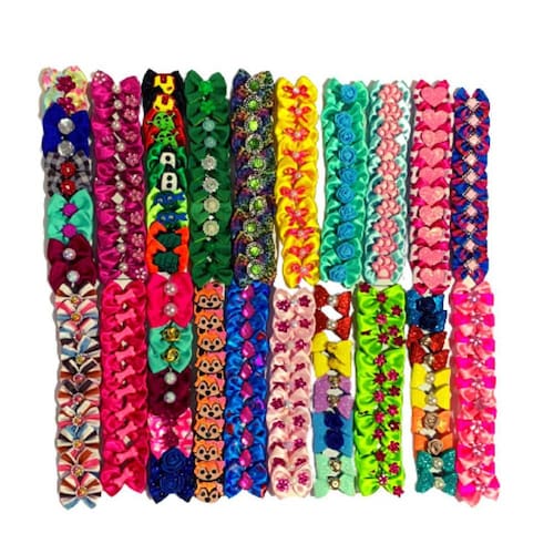 - este laço deixará seu pet ainda mais com estilo e elegância. - são 20 pacotes com 10 laços cada; - 200 lacinhos no total; - para fazer penteados nos pets; - apresenta liga resistente de silicone na parte detrás para ser amarrado ao pelo. - laços pequenos; Dimensões: Comprimento: 3 cm Largura: 2,5 cm
