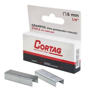 Grampo para grampeador Cortag, ideal para fixação de materiais leves a médios como tecidos, papéis e plásticos. Fabricado em aço carbono, oferece alta resistência à corrosão e durabilidade. Com pernas de 6 mm, coroa de 11mm, e arame de 0,5 mm, garante fixação precisa e segura em pequenos reparos, tapeçaria leve e trabalhos manuais. Compatível com grampeadores manuais.