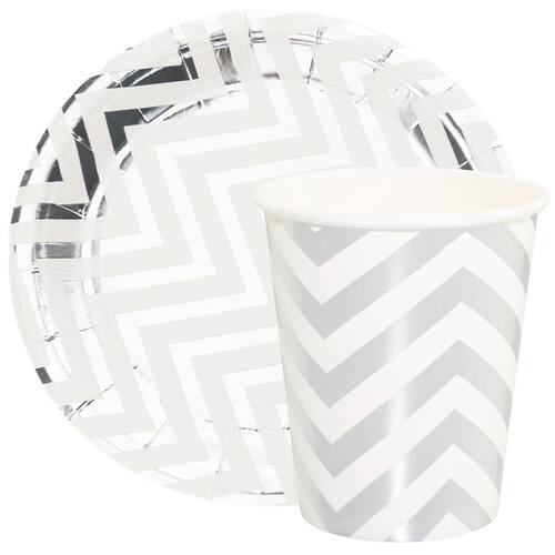 Kit 20Un Prato Copo Papel Festas Zig Zag Prata