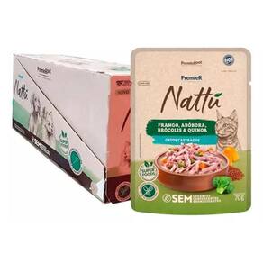 Kit 20un. Ração Úmida Premier Nattu Sachê Gatos Castrados Frango, Abóbora, Brócolis e Quinoa 70g